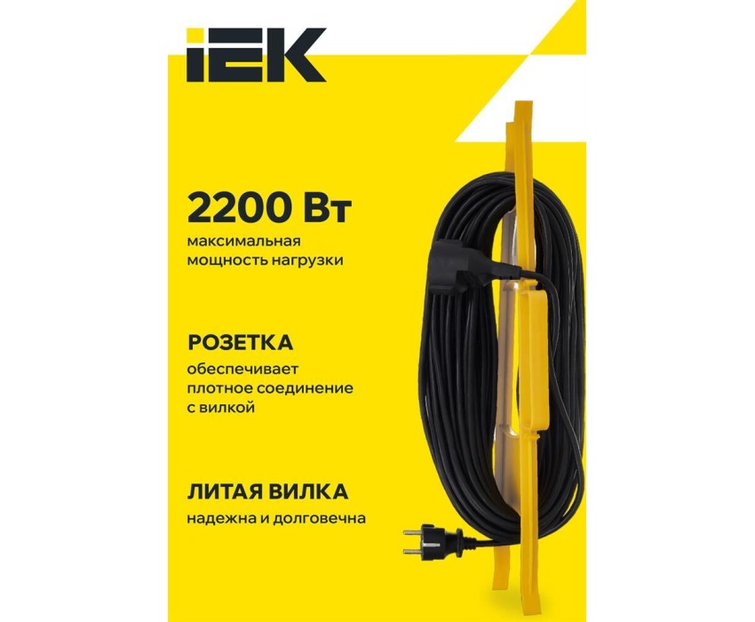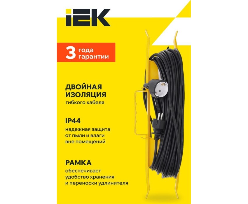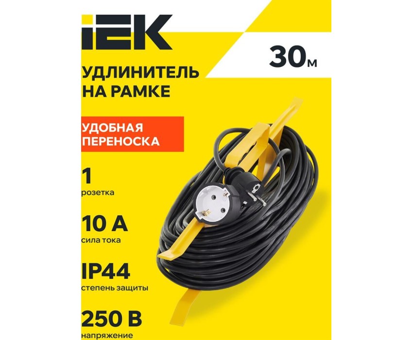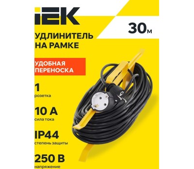 IEK Удлинитель силовой УР30, розеток 1шт, 3x1.0 кв.мм, 10A, 30м, ПВС, рамка пластиковая, черный [wkf14-10-01-30]