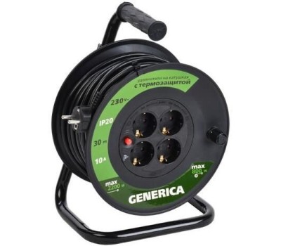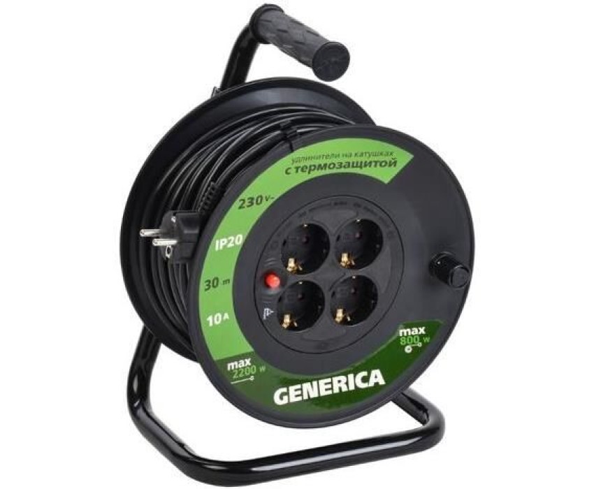 Количество розеток: 4. Длина кабеля: 30. Заземление: есть. Тип провода: ПВС. Комплектация: катушка. Сила тока: 10. Цвет: черный. Максимальная мощность: 2.2. Степень защиты: IP20. Особенности: Применяется для подключения бытовых или промышленных электроприборов на расстояние до 30 м от стационарной розетки. Незаменима как для решения бытовых задач на садовом участке, так и при выполнении строительных, ремонтных и монтажных работ на стройплощадке.. Габариты упаковки (ед) ДхШхВ: 0.244x0.185x0.33. Вес упаковки (ед): 2.59. Страна производства: Китай. Гарантия: 12 мес.. Сечение кабеля: 3x1.0 кв.мм. Комплектация: катушка. Количество розеток: 4 шт. Сила тока: 10 A. Максимальная мощность: 2.2 кВт. Кабель: 30 м, 3x1.0 кв.мм, с заземлением, тип провода ПВС. Степень защиты: IP20