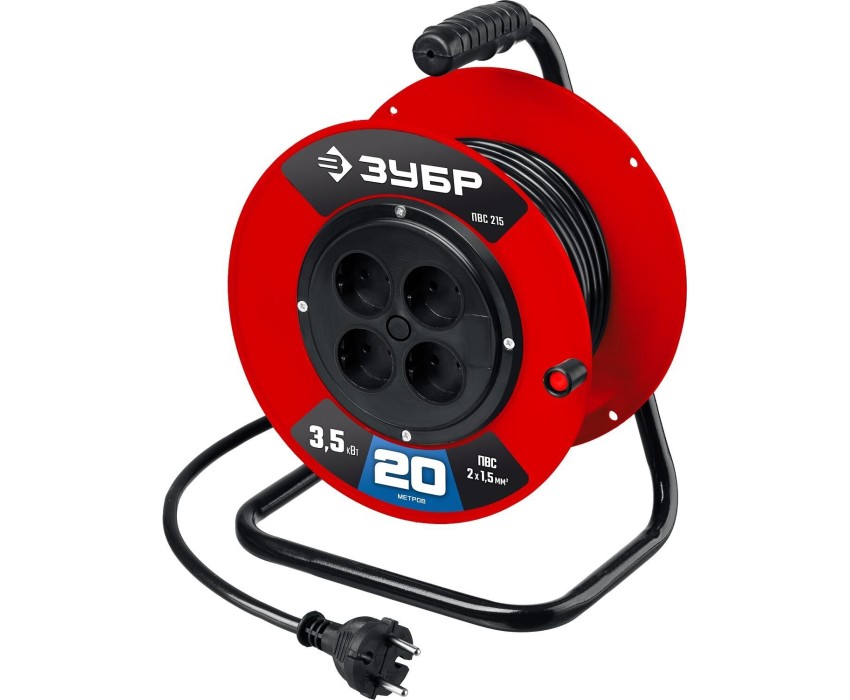 ЗУБР ПВС-215, ПВС, 2 х 1.5 мм2, 20 м, 3500 Вт, силовой удлинитель на катушке (55103-20)