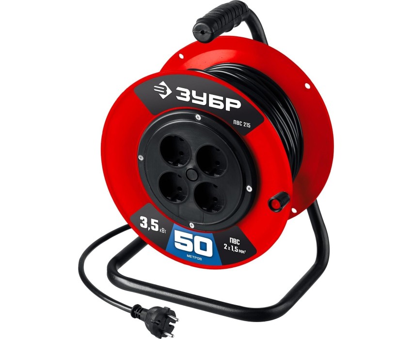 ЗУБР ПВС-215, ПВС, 2 х 1.5 мм2, 50 м, 3500 Вт, силовой удлинитель на катушке (55103-50)