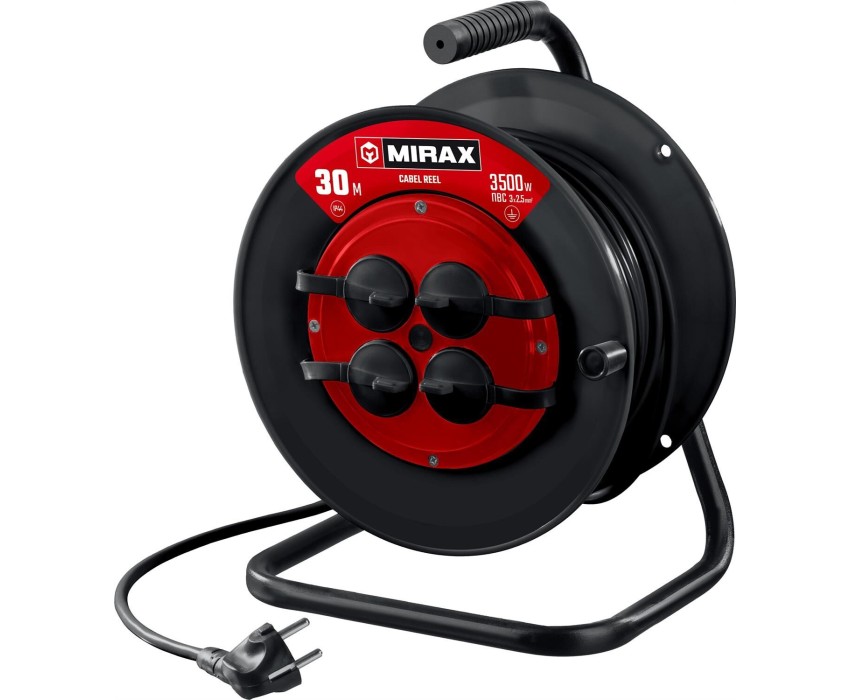 MIRAX ПВС, 3 х 2.5 мм2, 30 м, 3500 Вт, IP44, силовой удлинитель на катушке (55051-30)