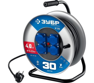 ЗУБР КГ-325, КГ, 3 x 2.5 мм2, 30 м, 4000 Вт, IP44, силовой удлинитель на стальной катушке, Профессионал (55079-30)