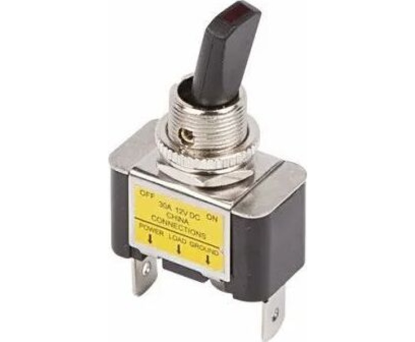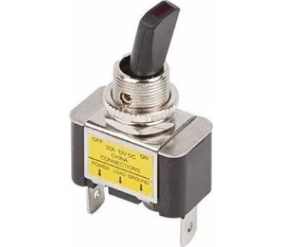 Тумблер 12V 30А (3c) ON-OFF однополюсныйс красной LED подсветкой предназначен для коммутации эл-х цепей напряжением 12В. Такая разновидность переключателей применяется на лицевых панелях в качестве комплектующих изделий различного электрооборудования . Отличительной особенностью тумблера является перекидной переключатель, принцип действия которого основан на его перемещении в одну из позиций.Подключение контактов осуществляется с помощью плоских клемм, либо с помощью пайки. Основные Хар-ки: Номинальное напряжение: 12В; Номинальный ток: 30A; Тип переключения: ON-OFF; Количество контактных групп: 1; Количество контактов в контактной группе: 3; Фиксация положений: да; Индикатор коммутационных положений: красн LED; Установочный D: 12.2мм; Рабочая темп: от -25?до +85?; Ресурс: 10 000 циклов. Данный переключатель устанавливается на различные технические устройства, требующие высокой надежности в работе.