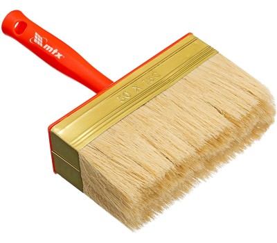 Кисть-ракля MTX 84124 толщиной 50 мм и шириной 150 мм, с натуральной щетиной, пластмассовыми корпусом и ручкой, используется для малярных работ на участках большой площади, поэтому удобна для обработки стен, потолков и фасадов. Натуральная щетина устойчива к химическому воздействию, поэтому не деформируется и сохраняет упругость при работе с ЛКМ на водной основе, грунтовками, масляными красками и клеящими составами. Преимущества Долговечность — щетина обладает высокой износостойкостью, металлический бандаж защищен от ржавчины антикоррозийным покрытием. Высокое качество окрашивания — кисть равномерно распределяет краску по поверхности. Низкий расход ЛКМ — натуральная щетина двойной выварки с расщепленными щетинками способна удерживать и отдавать большой объем краски. Эргономичность — утолщенная рукоятка обеспечивает удобный захват и позволяет долго работать без усталости. Продуманная конструкция — во время перерыва в работе кисть можно закрепить на краю емкости с краской. Удобное хранение — отверстие в рукоятке позволяет подвешивать кисть на крючок или гвоздь.