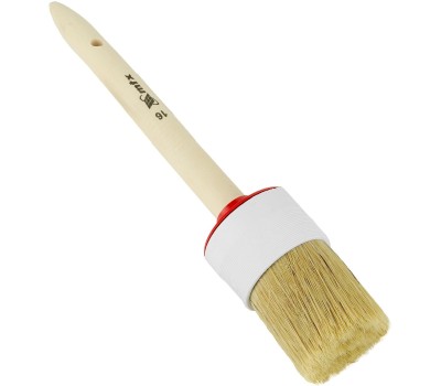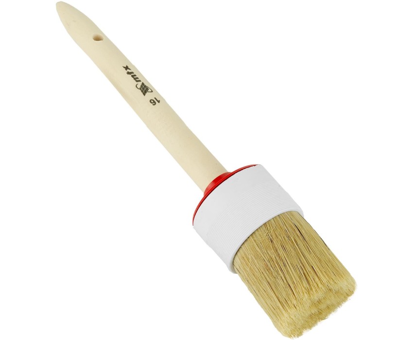 Круглая кисть MTX №16 82086 диаметром 55 мм, с натуральной щетиной и деревянной ручкой, пригодится в быту для окрашивания узких длинных поверхностей. Светлая натуральная свиная щетина с добавлением искусственной обладает высокой износоустойчивостью и может использоваться для нанесения красок с содержанием растворителей, а также масляных красок и лаков. Преимущества Высокое качество работ — за счет двойной выварки щетина не содержит включений жира и мелких частиц грязи. Эффективность — щетина расщеплена на концах, что увеличивает способность кисти набирать и отдавать лакокрасочные материалы. Долговечность — пластиковый бандаж надежно фиксирует щетину и не разрушается под воздействием воды, поэтому кисть можно мыть. Комфорт и надежность — рукоятка выполнена из отборной древесины, отшлифована и покрыта защитным лаком. Удобное хранение — в рукоятке предусмотрено отверстие для подвешивания на крючок.