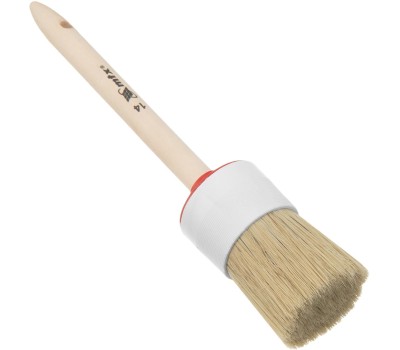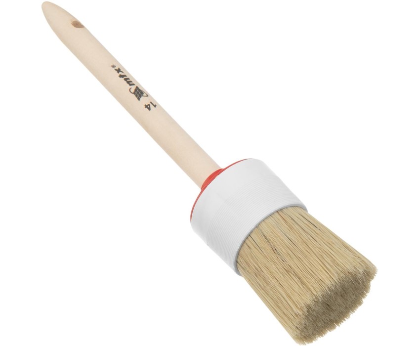 Круглая кисть MTX №14 82084 диаметром 50 мм, с натуральной щетиной и деревянной ручкой, пригодится в быту для окрашивания узких длинных поверхностей. Светлая натуральная свиная щетина с добавлением искусственной обладает высокой износоустойчивостью и может использоваться для нанесения красок с содержанием растворителей, а также масляных красок и лаков. Преимущества Высокое качество работ — за счет двойной выварки щетина не содержит включений жира и мелких частиц грязи. Эффективность — щетина расщеплена на концах, что увеличивает способность кисти набирать и отдавать лакокрасочные материалы. Долговечность — пластиковый бандаж надежно фиксирует щетину и не разрушается под воздействием воды, поэтому кисть можно мыть. Комфорт и надежность — рукоятка выполнена из отборной древесины, отшлифована и покрыта защитным лаком. Удобное хранение — в рукоятке предусмотрено отверстие для подвешивания на крючок.
