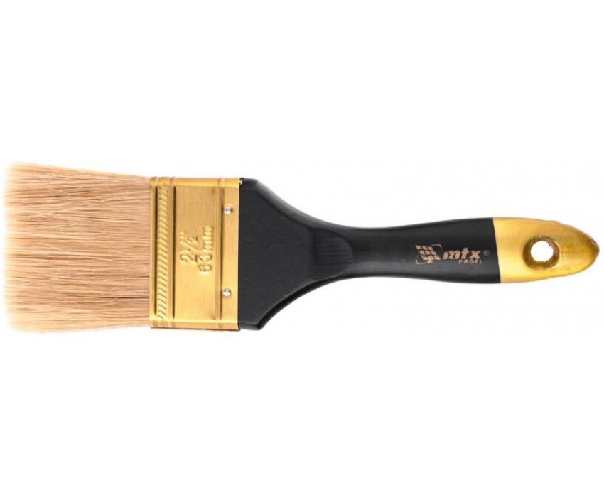 Плоская кисть «Профи» MTX 83153 шириной 2,5 дюйма, с натуральной щетиной и деревянной ручкой, рассчитана на профессиональное выполнение малярных работ. Натуральная щетина с увеличенной плотностью набивки подходит для нанесения различных типов ЛКМ, в том числе содержащих растворители. Преимущества Ширина 63 мм — кисть оптимальна для окрашивания поверхностей небольшой площади. Высокий ресурс — кисть премиум качества легко выдерживает интенсивное и многократное использование. Равномерное окрашивание — щетина двойной выварки не содержит посторонних примесей, а расщепленные кончики обеспечивают высокий показатель впитываемости и отдачи краски. Простой уход — кисть можно мыть, т.к. антикоррозийное покрытие защищает бандаж от разрушения. Комфортная работа — рукоятка из отборной древесины отшлифована и покрыта лаком, поэтому удобно лежит в руке. Практичное хранение — в рукоятке имеется отверстие для подвешивания на крючок.