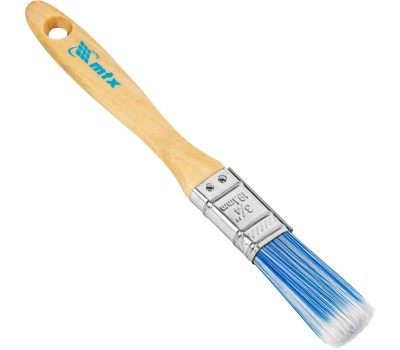 Плоская кисть MTX «Евро» 83068 шириной 3/4", с искусственной щетиной и деревянной ручкой, предназначена для малярных работ. Оптимальна для работы с водорастворимыми ЛКМ (акриловыми, латексными, водоэмульсионными), удобна для обработки узких и труднодоступных мест. Кисть подходит для профессионального использования. Преимущества Долговечность — искусственная щетина не разбухает и не теряет эластичность под действием воды, выдерживает многократное использование. Прочность — щетина крепко зафиксирована при помощи клеевого состава и металлического бандажа. Эффективная работа — расщепленная на концах щетина хорошо впитывает и отдает краску. Высокое качество выполняемых работ — благодаря волоскам конической формы кисть равномерно распределяет краску, позволяя получить гладкое покрытие. Коррозионная стойкость — на металлический бандаж нанесено защитное покрытие, а на деревянную рукоятку — матовый лаковый состав. Комфортная работа — эргономичная рукоятка удобно ложится в руку, позволяя долго работать без ощущения усталости. Удобное хранение — в рукоятке имеется отверстие для подвешивания кисти на крючок или гвоздь.
