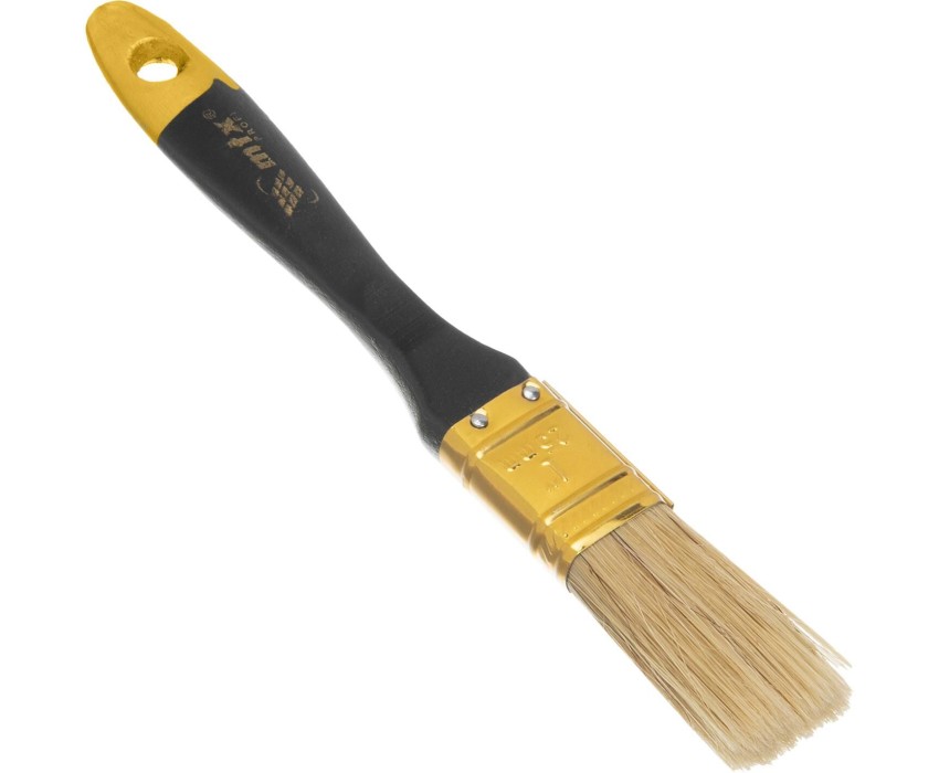 Плоская кисть «Профи» MTX 83150 шириной 1 дюйм, с натуральной щетиной и деревянной ручкой, рассчитана на профессиональное выполнение малярных работ. Натуральная щетина с увеличенной плотностью набивки подходит для нанесения различных типов ЛКМ, в том числе содержащих растворители. Преимущества Ширина 25 мм — кисть оптимальна для окрашивания тонких труб, решеток, плинтусов и других узких поверхностей. Высокий ресурс — кисть премиум качества легко выдерживает интенсивное и многократное использование. Равномерное окрашивание — щетина двойной выварки не содержит посторонних примесей, а расщепленные кончики обеспечивают высокий показатель впитываемости и отдачи краски. Простой уход — кисть можно мыть, т.к. антикоррозийное покрытие защищает бандаж от разрушения. Комфортная работа — рукоятка из отборной древесины отшлифована и покрыта лаком, поэтому удобно лежит в руке. Практичное хранение — в рукоятке имеется отверстие для подвешивания на крючок.
