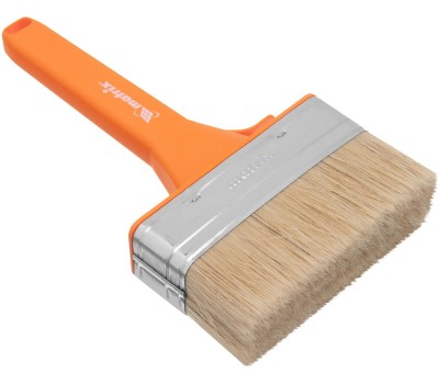 Плоская кисть Matrix Color Line «ФАСАД» 83395 толщиной 35 мм и шириной 120 мм предназначена для окрашивания грубых шероховатых поверхностей и обширных участков. Используется при проведении фасадных работ. Рабочая часть изготовлена из высококачественной натуральной щетины (показатель ТОПС не ниже 70%) с расщепленными кончиками, которая набирает и удерживает большой объем краски, — это обеспечивает высокую производительность кисти. Щетина устойчива к воздействию агрессивных сред, поэтому может использоваться с лакокрасочными материалами на основе растворителей. Преимущества Равномерное окрашивание — рабочая часть из натуральной щетины двойной проварки обеспечивает отличное распределение краски по поверхности. Долговечность — щетина обладает высокой износостойкостью, клинья не подвержены воздействию воды и агрессивных ЛКМ, антикоррозионное покрытие предохраняет бандаж от разрушения. Возможность интенсивного применения — пластиковые клинья, эпоксидный клей уникальной рецептуры и прочный бандаж обеспечивают надежное скрепление щетины с рукояткой. Эргономичность — удобная пластиковая рукоятка позволяет долго работать без ощущения усталости. Продуманная форма рукоятки — благодаря специальному вырезу кисть можно закрепить на краю банки, ведра или ванночки. Хранение в вертикальном положении — в рукоятке предусмотрено отверстие для подвешивания кисти.