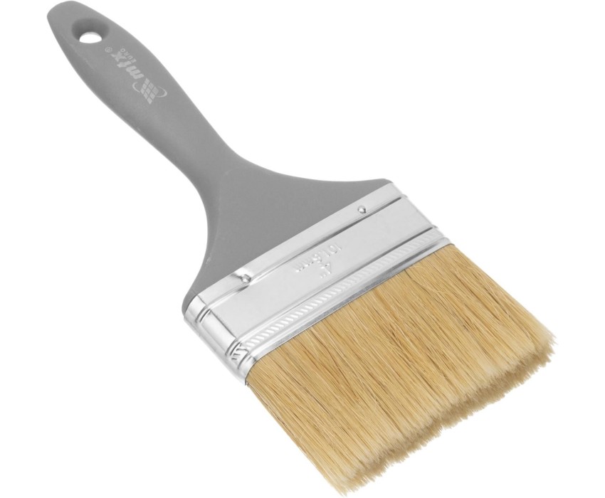 Плоская кисть MTX «Евро» 83067 шириной 4 дюйма, с натуральной щетиной и пластмассовой ручкой, используется для профессионального окрашивания поверхностей. Рекомендуется для нанесения агрессивных ЛКМ с содержанием растворителей. Преимущества Ширина рабочей части 100 мм — кистью удобно окрашивать участки большой площади. Прочность и долговечность — бандаж надежно скрепляет щетину с рукояткой, поэтому кисть выдерживает многократное использование. Высокое качество окрашивания — дважды вываренная щетина не содержит посторонних примесей, а расщепленные кончики увеличивают ее способность впитывать и отдавать краску. Коррозионная стойкость — защитное покрытие предотвращает разрушение бандажа под воздействием влаги. Эргономичность — пластмассовая рукоятка удобно лежит в руке, а специальное отверстие позволяет подвешивать кисть на гвоздь или крючок.
