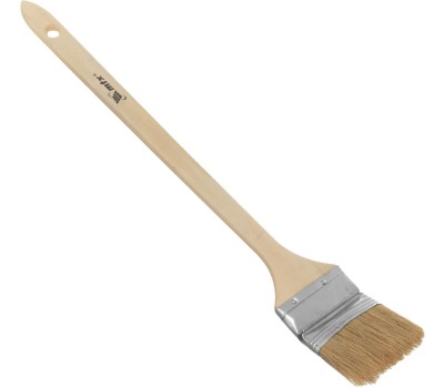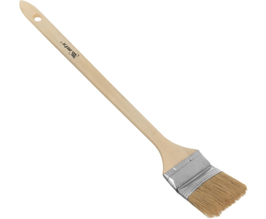 Радиаторная кисть MTX 83849 шириной 2,5", с натуральной щетиной и деревянной ручкой, используется для окрашивания радиаторов водяного отопления, металлических проволочных конструкций, труб, а также углов и стыков стен. Решение этих задач облегчает удлиненная ручка изогнутой формы. Натуральная щетина устойчива к агрессивным средам, поэтому кисть может применяться с эмалями и масляными красками. Преимущества: Высокое качество выполняемых работ — благодаря щетине с расщепленными кончиками кисть хорошо удерживает и распределяет краску, финишный слой получается ровным и гладким. Устойчивость к нагрузкам — щетина не выпадает, т. к. она надежно закреплена клеем, клиньями и металлическим бандажом. Возможность замачивания — защитное покрытие предохраняет бандаж от образования ржавчины. Комфортная работа — рукоятка из отборной древесины не выскальзывает из руки. Практичность — отверстие в рукоятке служит для подвешивания кисти и упрощает хранение.