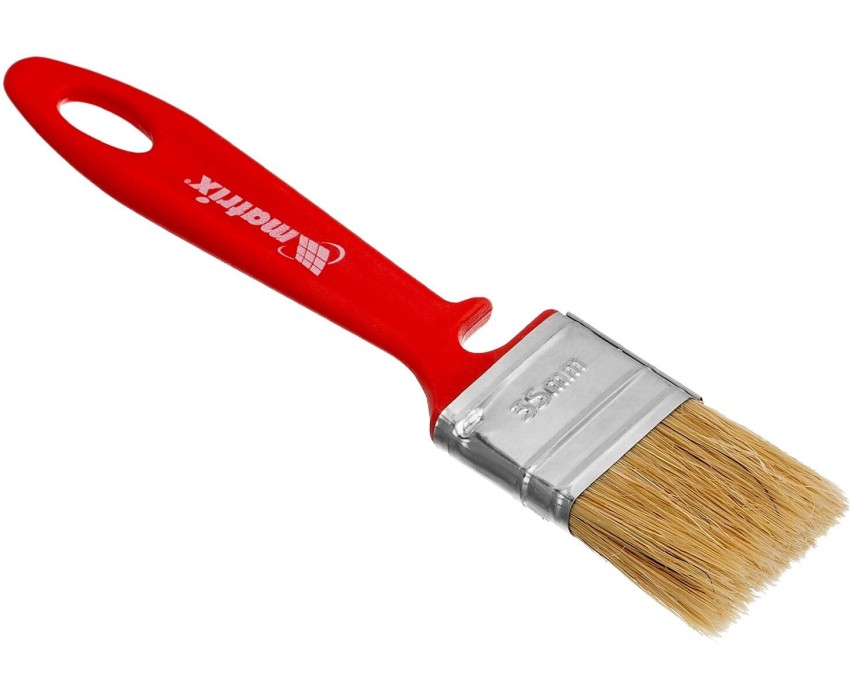 Флейцевая кисть Matrix Color Line «ЭМАЛИ» 83351 шириной 35 мм и толщиной 10 мм предназначена для работы с эмалями, в том числе на акриловой, алкидной основе, а также на основе растворителя. Натуральная щетина устойчива к износу и воздействию агрессивных жидкостей, а благодаря расщепленным концам хорошо впитывает и отдает краску. Высокая плотность щетины позволяет получить качественное покрытие. Преимущества Равномерное окрашивание — натуральная светлая щетина двойной выварки хорошо удерживает и распределяет краску. Долговечность — щетина надежно закреплена с помощью тщательно подобранной эпоксидной смолы, клиньев и бандажа, пластиковые клинья не деформируются при мытье или замачивании. Защита от разрушения — на бандаж нанесено антикоррозийное покрытие. Эргономичность — форма рукоятки продумана таким образом, чтобы мастер не уставал даже при длительной работе, специальный вырез позволяет зафиксировать кисть на малярном ведре или банке. Удобное хранение — в рукоятке имеется отверстие для подвешивания кисти на крючок или гвоздь.