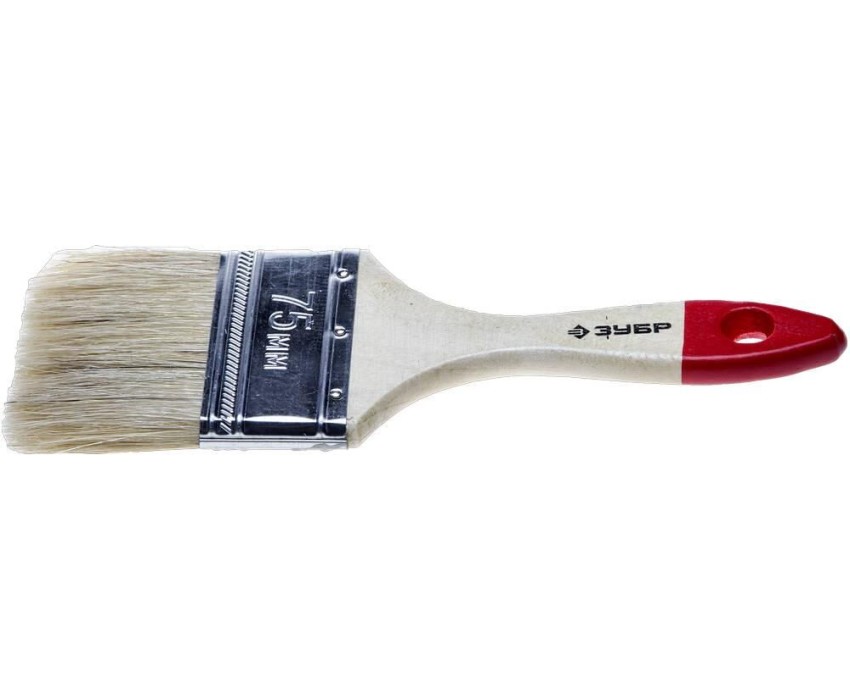 ЗУБР УНИВЕРСАЛ, 75 мм, 3″, светлая натуральная щетина, деревянная ручка, все виды ЛКМ, плоская кисть (4-01001-075)
