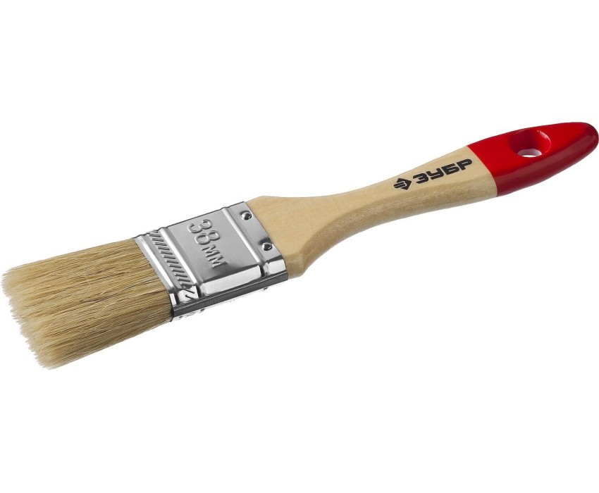 ЗУБР УНИВЕРСАЛ, 38 мм, 1.5″, светлая натуральная щетина, деревянная ручка, все виды ЛКМ, плоская кисть (4-01003-038)