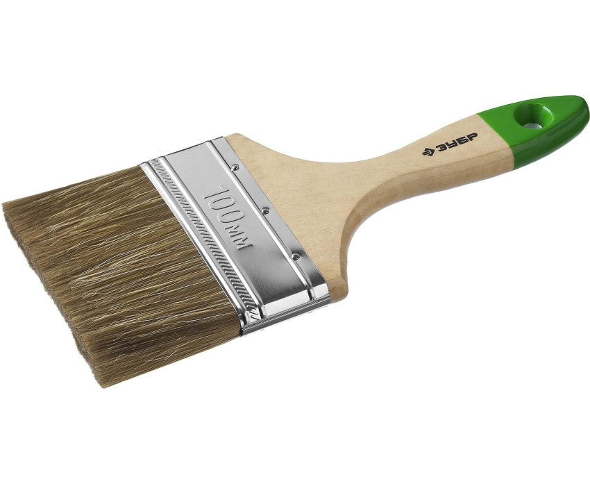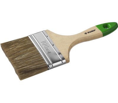 ЗУБР ЛАЗУРЬ, 100 мм, 4″, светлая смешанная щетина, деревянная ручка, плоская кисть (4-01009-100)
