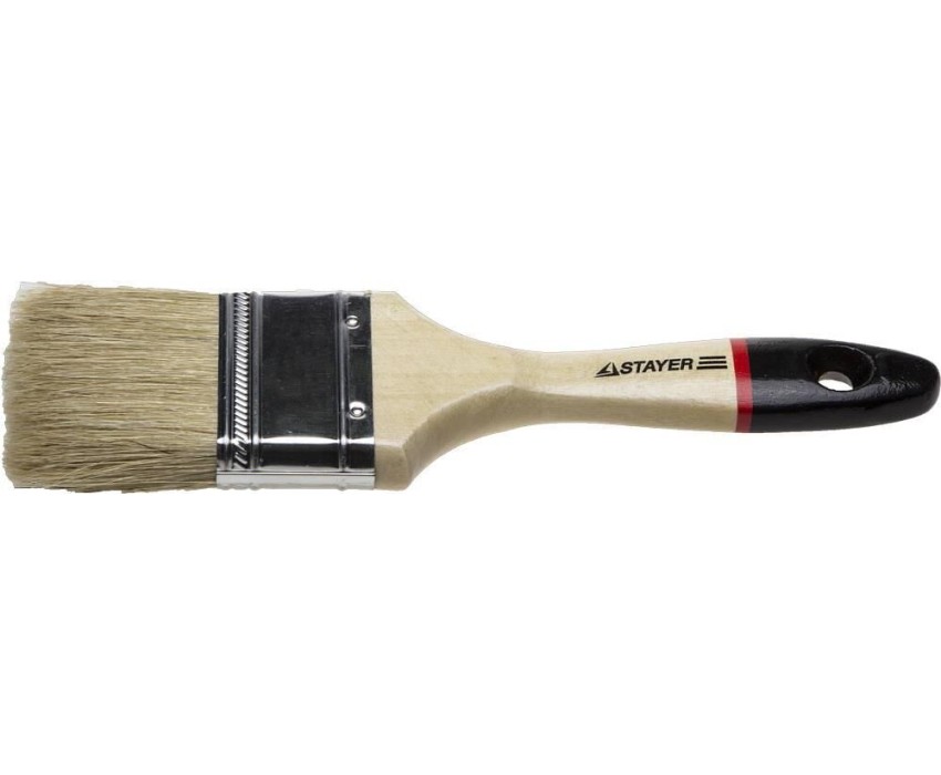 STAYER UNIVERSAL - EURO, 63 мм, 2.5″, светлая натуральная щетина, деревянная ручка, все виды ЛКМ, плоская кисть (0102-063)