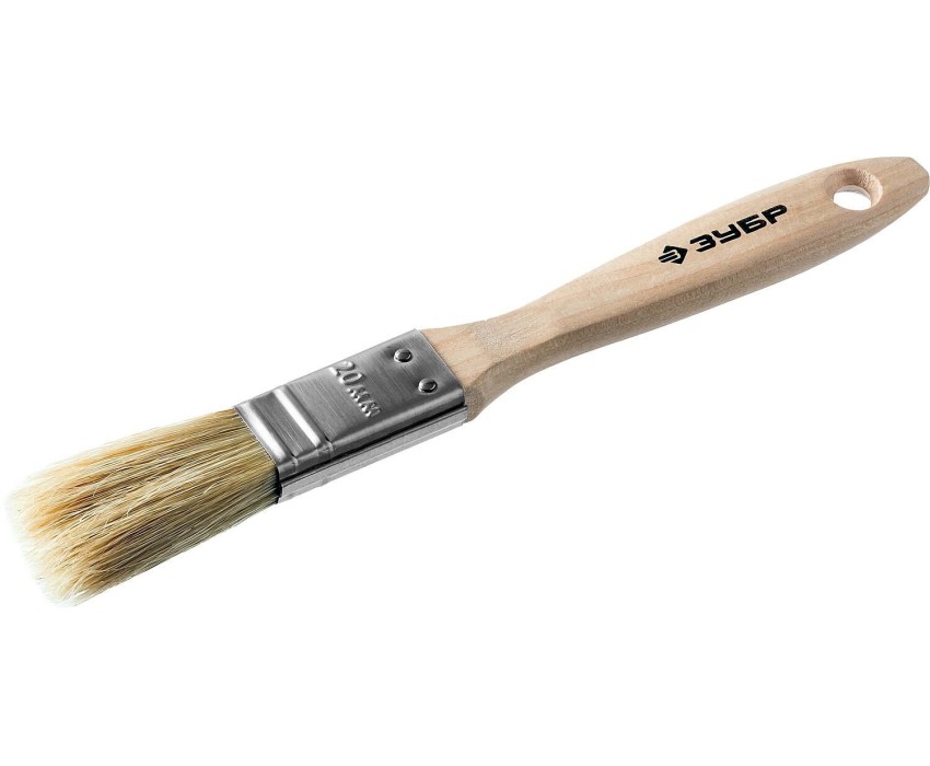 ЗУБР УНИВЕРСАЛ, 20 мм, 3/4″, светлая натуральная щетина, деревянная ручка, все виды ЛКМ, плоская кисть (01005-020)