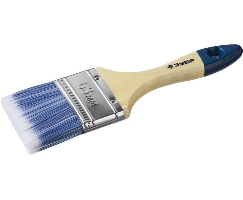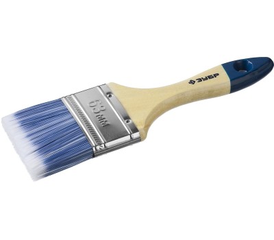 ЗУБР АКВА, 63 мм, 2.5″, светлая искусственная щетина, деревянная ручка, для воднодисперсионных и акриловых ЛКМ, плоская кисть (4-01007-063)