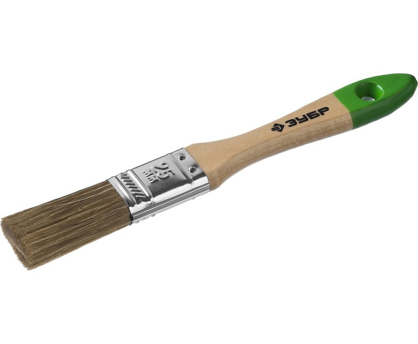 ЗУБР ЛАЗУРЬ, 25 мм, 1″, светлая смешанная щетина, деревянная ручка, для высокотекучих ЛКМ, плоская кисть (4-01009-025)