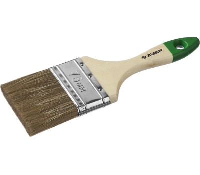 ЗУБР ЛАЗУРЬ, 75 мм, 3″, светлая смешанная щетина, деревянная ручка, плоская кисть (4-01009-075)