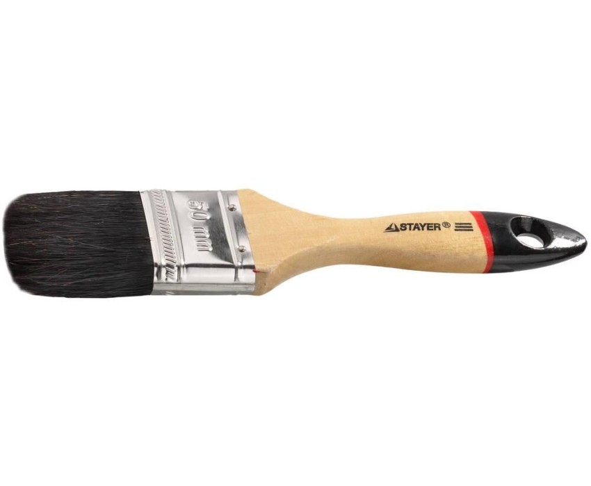 STAYER UNIVERSAL-EURO, 50 мм, 2″, чёрная натуральная щетина, деревянная ручка, все виды ЛКМ, плоская кисть (01022-050)