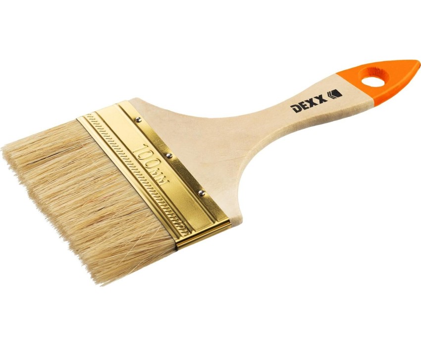 DEXX 100 мм, 4″, натуральная щетина, деревянная ручка, флейцевая, все виды ЛКМ, плоская кисть (0100-100)