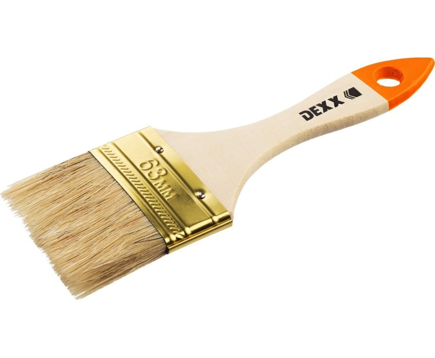 DEXX 63 мм, 2.5,″ натуральная щетина, деревянная ручка, флейцевая, все виды ЛКМ, плоская кисть (0100-063)