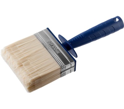 Отличное решение для нанесения лаков и красок на водной основе, грунтовки, побелки на большие поверхности, клеевых составов на обои, размывки потолков. Щетина кисти надежно закреплена бандажом из никелированной стали, а наличие удобной пластмассовой рукоятки обеспечит комфортную работу Преимущества Искусственная щетина Пластиковый корпус Фиксатор у основания ручки служит для крепления макловицы на краю ведра при работе Бандаж из никелированной стали Использование Для нанесения лаков и красок на водной основе. Перед использованием и после окончания работ промойте макловицу в растворителе, соответствующем наносимому материалу. При работе используйте средства индивидуальной защиты.