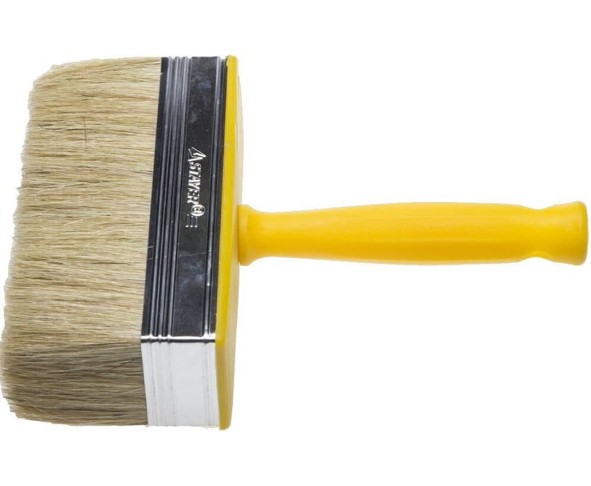 Отличное решение для работы со всеми типами ЛКМ, а так же грунтовки, побелки на большие поверхности, клеевых составов на обои, размывки потолков. Щетина кисти надежно закреплена бандажом из никелированной стали, а наличие удобной пластмассовой рукоятки обеспечит комфортную работу Преимущества смешанная щетина пластиковый корпус бандаж из никелированной стали фиксатор у основания ручки служит для крепления макловицы на краю ведра при работе Использование Предназначена для окрашивания поверхностей большой площади, для размыва старых лакокрасочных покрытий, нанесения клеевых составов. Может испрользоваться со всеми видами ЛКМ. Перед использованием и после окончания работ промойте кисть в растворителе.