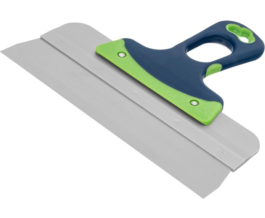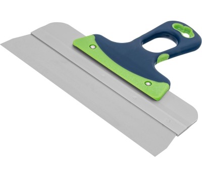 Фасадный шпатель Сибртех 85574 с рабочим полотном шириной 250 мм из нержавеющей стали и 2-компонентной рукояткой предназначен для нанесения, выравнивания и сглаживания отделочных составов, а также проведения других ремонтно-отделочных работ. Инструмент оптимально подходит для заглаживания зашпаклеванных швов. Преимущества Долговечность — рабочая часть выполнена из нержавеющей стали и устойчива к образованию коррозии. Надежность — алюминиевое ребро жесткости не допускает деформации рабочего полотна. Устойчивость к образованию коррозии — специальное защитное покрытие рабочей части позволяет увеличить срок службы инструмента. Максимально комфортная работа — двухкомпонентная изогнутая рукоятка эргономичной формы удобно ложится в руку и не проскальзывает в ладони. Подвесное хранение — в рукоятке предусмотрено отверстие.