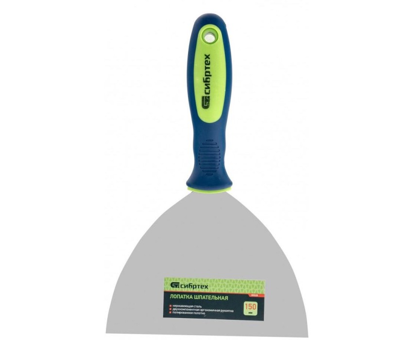 Шпательная лопатка из нержавеющей стали Сибртех 85528 шириной 150 мм, с двухкомпонентной рукояткой, облегчает проведение ремонтно-отделочных работ. Позволяет наносить и разравнивать строительные смеси, шпаклевать швы, заполнять трещины и удалять старые обои. Преимущества Долговечность и защита от коррозии — рабочая часть изготовлена из профилированной нержавеющей стали. Эффективная работа — за счет зеркальной полировки с полотна легко удаляются остатки смеси. Гибкость и прочность — рабочее полотно прошло термическую обработку для повышения эксплуатационных качеств. Ширина 15 см — небольшая лопатка оптимально подходит для исправления мелких неровностей и трещин в труднодоступных местах. Эргономичность — рукоятка анатомической формы имеет нескользящее покрытие для удобного захвата и комфортной работы. Долговечность — рабочее полотно прочно соединено с рукояткой. Удобное подвесное хранение — в рукоятке предусмотрено отверстие.