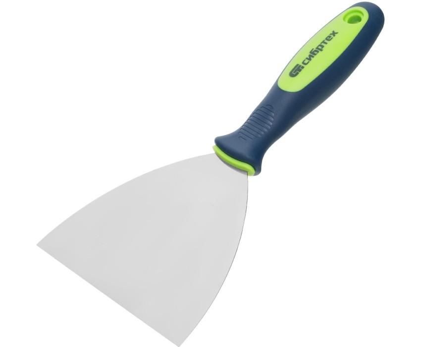 Шпательная лопатка из нержавеющей стали Сибртех 85527 шириной 120 мм, с двухкомпонентной рукояткой, облегчает проведение ремонтно-отделочных работ. Позволяет наносить и разравнивать строительные смеси, шпаклевать швы, заполнять трещины и удалять старые обои. Преимущества Долговечность и защита от коррозии — рабочая часть изготовлена из профилированной нержавеющей стали. Эффективная работа — за счет зеркальной полировки с полотна легко удаляются остатки смеси. Гибкость и прочность — рабочее полотно прошло термическую обработку для повышения эксплуатационных качеств. Ширина 12 см — небольшая лопатка оптимально подходит для исправления мелких неровностей и трещин в труднодоступных местах. Эргономичность — рукоятка анатомической формы имеет нескользящее покрытие для удобного захвата и комфортной работы. Долговечность — рабочее полотно прочно соединено с рукояткой. Удобное подвесное хранение — в рукоятке предусмотрено отверстие.