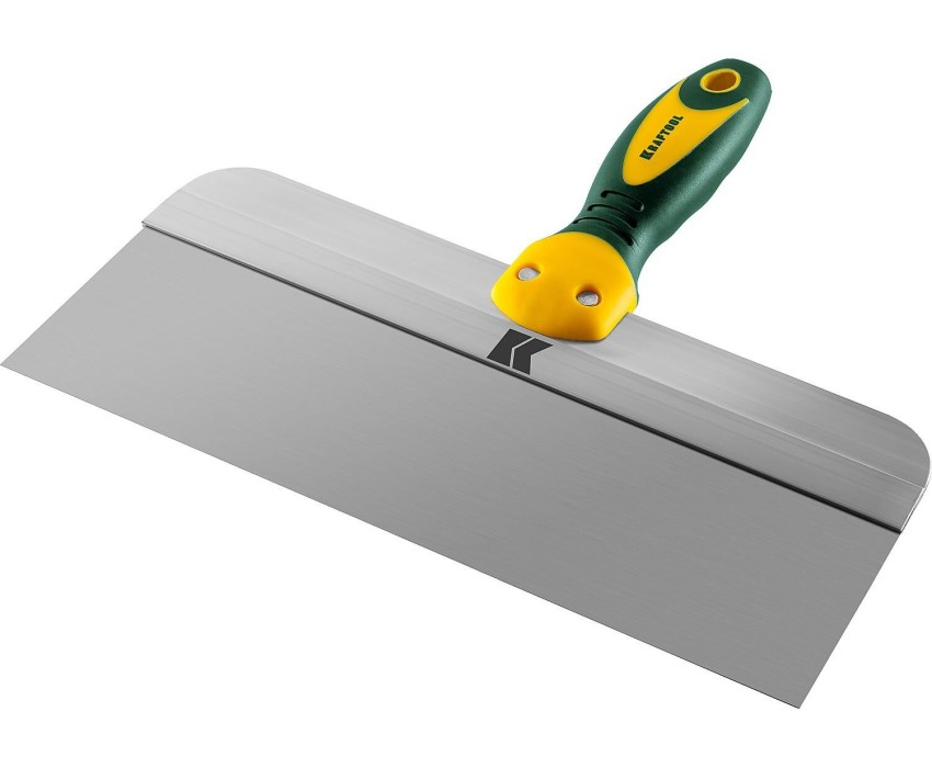 KRAFTOOL 300 мм, широкое полотно, алюминиевая направляющая, двухкомпонентная ручка, нержавеющий, фасадный шпатель (10036-300)
