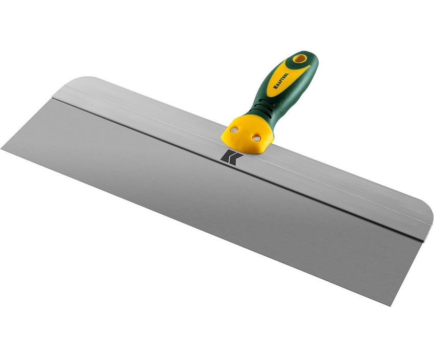 KRAFTOOL 400 мм, широкое полотно, алюминиевая направляющая, двухкомпонентная ручка, нержавеющий, фасадный шпатель (10036-400)