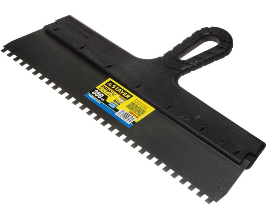 STAYER PROFlat, 350 мм, зуб 6 х 6 мм, пластиковая ручка, зубчатый, нержавеющий фасадный шпатель, Professional (1009-35-06)