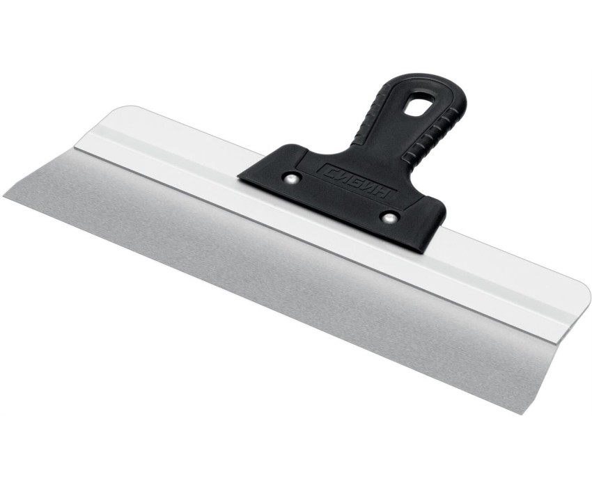 Шпатель СИБИН - отличный выбор для строительства и ремонта! Полотно из нержавеющей стали обеспечивает надежность и долгий срок службы инструмента, алюминиевая направляющая предотвращает изгиб полотна, а эргономичная однокомпонентная рукоятка создает условия для комфортной работы. Преимущества Ширина полотна - 350 мм Материал полотна - нержавеющая сталь Материал ручки - однокомпонентная Использование Для нанесения и выравнивания строительных смесей