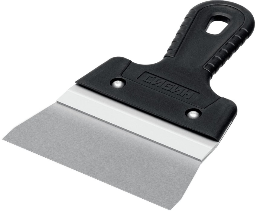 Шпатель СИБИН - отличный выбор для строительства и ремонта! Полотно из нержавеющей стали обеспечивает надежность и долгий срок службы инструмента, алюминиевая направляющая предотвращает изгиб полотна, а эргономичная однокомпонентная рукоятка создает условия для комфортной работы. Преимущества Ширина полотна - 150 мм Материал полотна - нержавеющая сталь Материал ручки - однокомпонентная Использование Для нанесения и выравнивания строительных смесей