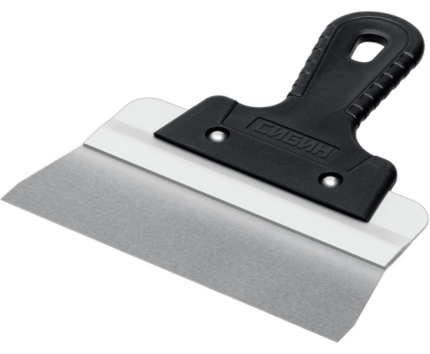 Шпатель СИБИН - отличный выбор для строительства и ремонта! Полотно из нержавеющей стали обеспечивает надежность и долгий срок службы инструмента, алюминиевая направляющая предотвращает изгиб полотна, а эргономичная однокомпонентная рукоятка создает условия для комфортной работы. Преимущества Ширина полотна - 200 мм Материал полотна - нержавеющая сталь Материал ручки - однокомпонентная Использование Для нанесения и выравнивания строительных смесей