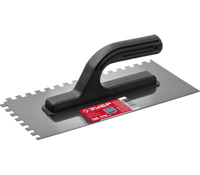 Зеркально отполированное нержавеющее полотно обеспечит надежность конструкции, лучшую защиту от коррозии, а удобная рукоять из пластмассы обеспечит комфортную работу при нанесении и распределении штукатурных смесей и клеевых составов. Преимущества Размер - 130х270 мм Материал полотна - нержавеющая сталь атериал ручки - пластмасса Зуб - 8х8 мм Использование Для нанесения и распределения штукатурных смесей и клеевых составов.