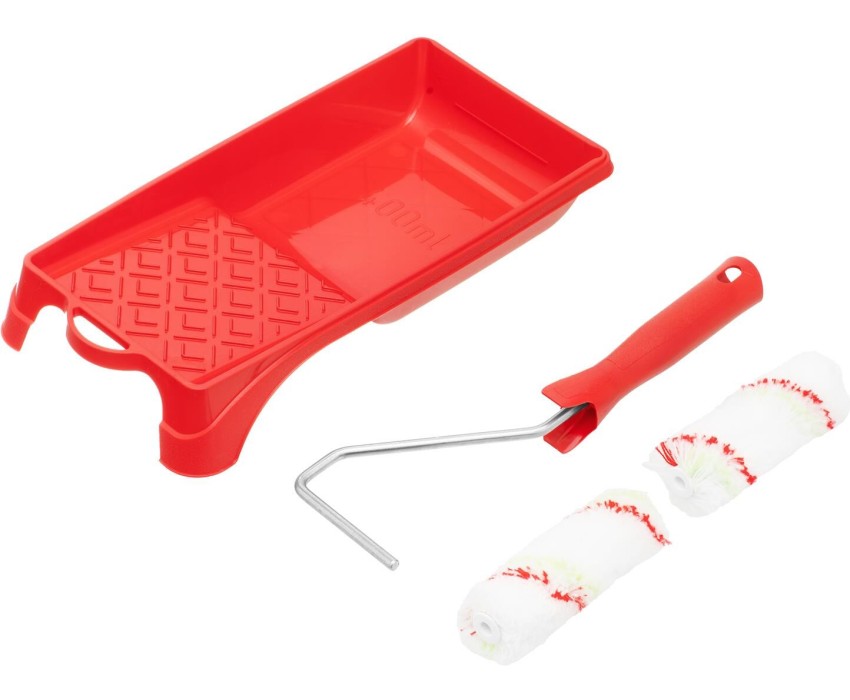 Малярный набор для работ с эмалями Сибртех 80453 состоит из двух сменных мини-валиков шириной 110 мм, бюгеля и кюветы размером 150 мм х 290 мм. Валики подходят для нанесения эмалей и других ЛКМ с агрессивными веществами в составе. Шубки из полиамида и полиакрила хорошо удерживают форму, имеют повышенную износостойкость, высокий коэффициент впитываемости и отдачи краски, а их волокна не остаются на поверхности, что гарантирует высокое качество окрашивания. Преимущества Удобное окрашивание небольших поверхностей — мини-валики имеют ширину 110 мм, поэтому подходят даже для труднодоступных участков. Прочная кювета — она выполнена из высококачественной пластмассы и устойчива к механическим нагрузкам. Экономный расход лакокрасочных материалов — благодаря специальной конструкции кюветы излишки краски стекают в ванночку, а не скапливаются на раскаточной доске. Комфортная эксплуатация — эргономичная рукоятка бюгеля обеспечивает удобный захват, что снижает усталость мастера во время длительной работы.