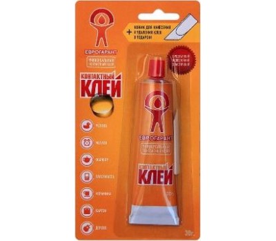 Универсальный контактный клей, качественно склеит резину, пластмассу, изделия из кожи, керамику, металл. Позволяет производить мелкий ремонт обуви, мебели, игрушек, незаменим дома, на даче или в офисе. Форма упаковки - блистер. Объем - 30 г.