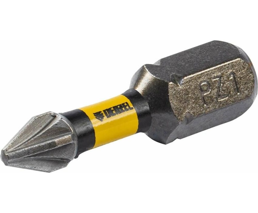 Набор бит торсионных PZ1 x 25 мм Denzel 11686 с лазерной обработкой шлица, из стали S2, 10 шт., предназначен для монтажа и демонтажа резьбовых соединений с помощью ударного шуруповерта. Он незаменим в строительных, слесарных и монтажных работах, в автосервисах, при проведении ремонта в доме.Торсионная зона способна пружинить, за счет чего она частично амортизирует тангенциальный удар от шуруповерта. Такое решение позволяет равномерно распределить нагрузку по бите, избежать поломки шлица и в разы увеличить объем работы, проделанный одной насадкой.ПреимуществаДополнительные выступы между гранями риск выскальзывания шлица из головки крепежа и поломки сведен к минимуму.Продуманная конструкция торсионная зона позволяет работать ударным шуруповертом даже с особо твердыми поверхностями без риска поломки бит.Высококачественный материал изготовления японская легированная сталь S2 обеспечивает устойчивость бит к износу и увеличивает их ресурс.