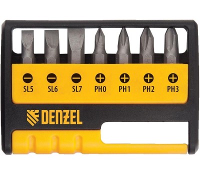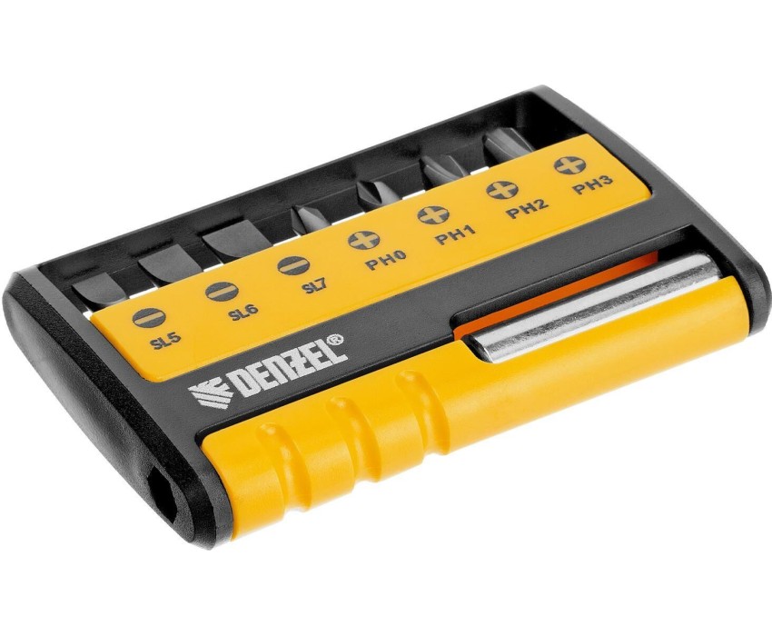 Набор бит DENZEL Набор бит с магнитным держателем, S2, 8 шт 133577