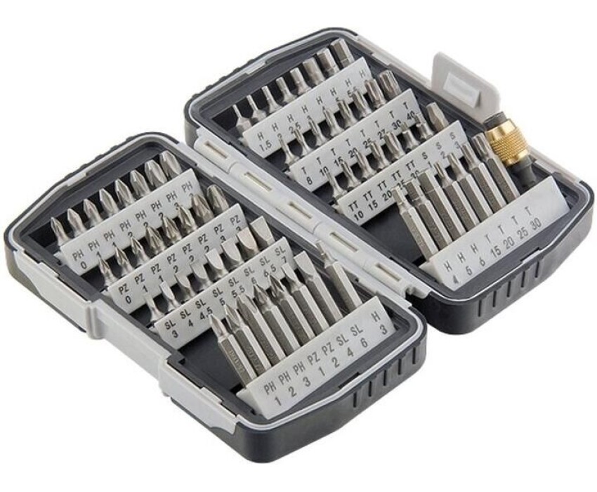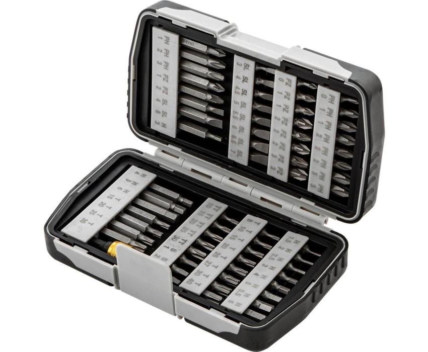 Набор Matrix 11327 состоит из 64 предметов, упакованных в пластиковый бокс, и включает биты из стали CrV и магнитный адаптер. Кроме бит длиной 25 мм в комплект входит 15 насадок длиной 50 мм для работы в труднодоступных местах. Оснастки используются совместно с шуруповертами и отвертками для монтажа и демонтажа резьбовых соединений.ПреимуществаПрочность и коррозионная стойкость — оснастка из хромованадиевой стали выдерживает интенсивное использование.Работа с крепежами различного типа — магнитный адаптер позволяет быстро менять насадки.Надежная фиксация — бита не выпадает из магнитного адаптера во время работы.Продуманное хранение и транспортировка — набор поставляется в удобном пластиковом боксе.