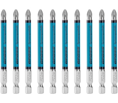 Набор односторонних бит Gross 112001 включает в себя 10 сменных насадок PZ2 x 90 мм из стали S2, с круглым профилем, крестообразными шлицами Pozidriv и шестигранными хвостовиками 1/4 , предназначенных для работы с шуруповертом. Профессиональная оснастка обеспечивает быстрый монтаж и демонтаж резьбовых соединений с углублением PZ2. Устойчивое сцепление с крепежом благодаря дополнительным ребрам на шлице позволяет увеличить крутящий момент и снизить риск соскакивания биты. Преимущества Высокая результативность даже в ограниченном пространстве — благодаря удлиненному профилю 90 мм битами удобно работать в труднодоступных местах. Износоустойчивость — биты изготовлены из японской легированной стали S2 повышенной прочности и закалены до твердости 62 HRC. Намагниченные шлицы — крепеж удерживается битой, поэтому свободной рукой можно придерживать закрепляемую поверхность. Антикоррозионные свойства — никелевое покрытие увеличивает срок службы насадок. Защита от подделок — на каждой бите предусмотрено цветное кольцо с логотипом ТМ Gross. 10 бит в комплекте — набора хватит на целую бригаду.