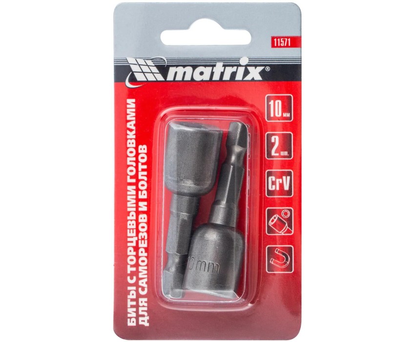 Биты с торцевыми головками Matrix 11571 размером 10 х 45 мм, 2 шт. в уп., предназначены для работ с шуруповертом.