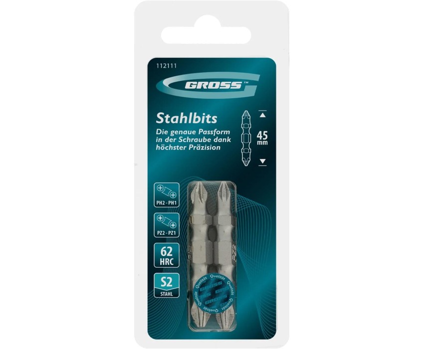 Набор бит GROSS Набор бит двухстор., PH2-PH1х45мм, PZ2-PZ1х45мм, сталь S2, 2 шт.//