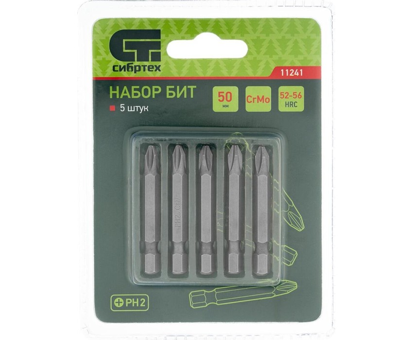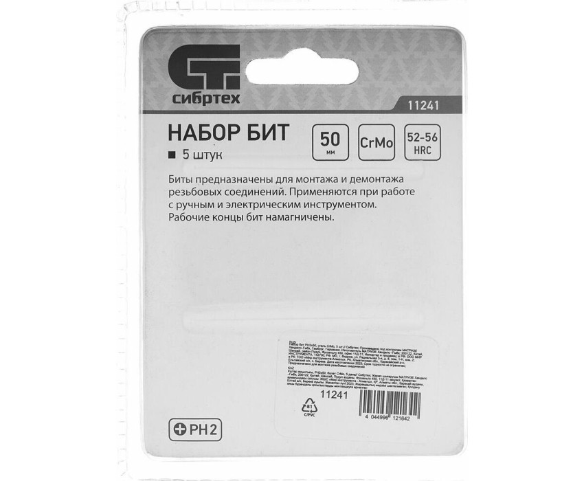 Бита СИБРТЕХ Бита PH2 x 50, сталь CrMo, 5 шт. 11241