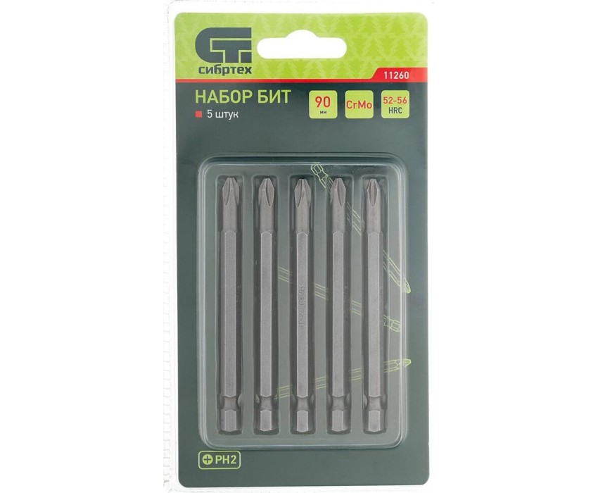 Бита СИБРТЕХ Бита PH2 x 90, сталь CrMo, 5 шт. 11260